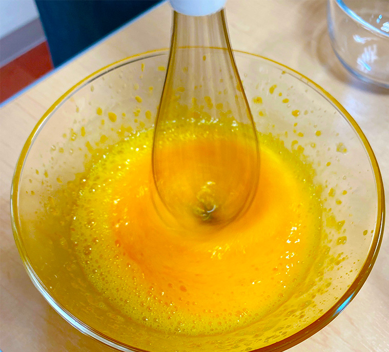 油は少しずつ加えてその都度よく混ぜ合わせることがポイント。 オメガ3たっぷりの荏胡麻油を使ったヘルシーなマヨネーズです!