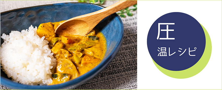 ② 豚肩ロース肉を炒め、かぼちゃ、かぶ、にんじん、長ねぎ、水を加え、煮る
