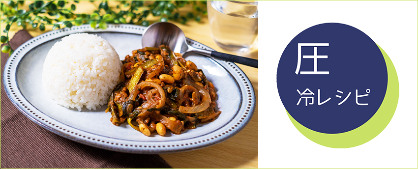 ③ 小松菜を加え、トマト缶・トマトペーストを加え、大豆を加え、