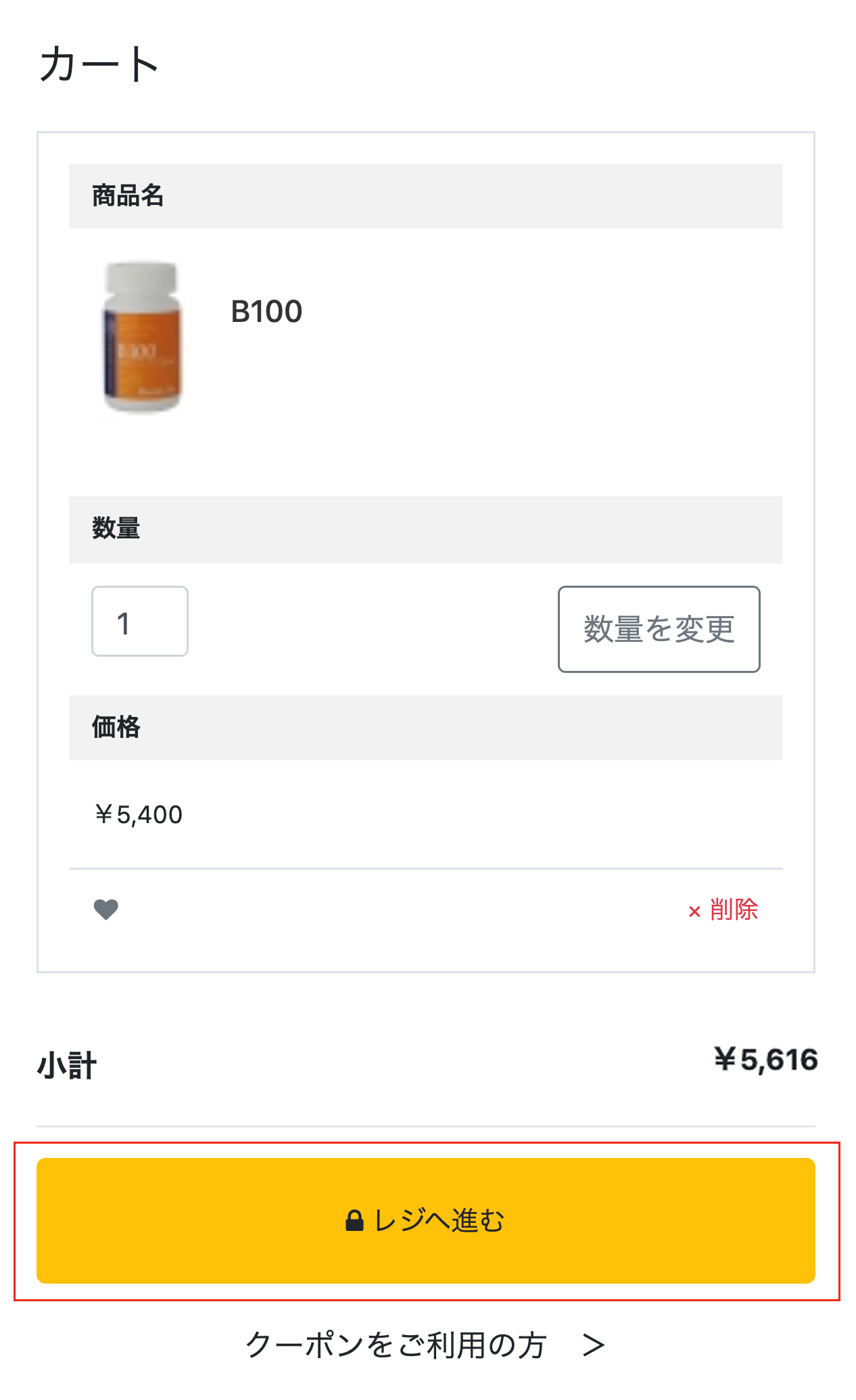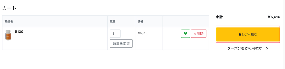 「レジへ進む」ボタンをクリックすると、ご注文手続きに入ります。