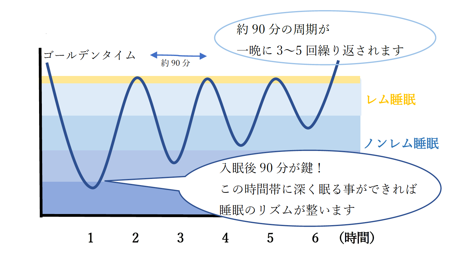 睡眠には「深い眠り(ノンレム睡眠)」「浅い眠り(レム睡眠)」があります。 レム睡眠 脳が活発に働いており、記憶の整理や定着が行われています。 ノンレム睡眠 大脳の休息期間。脳や肉体の疲労回復のために重要!