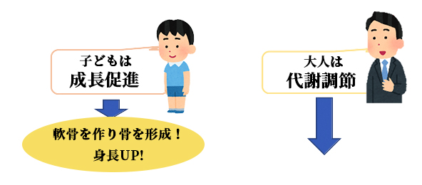 成長が止まった大人になると、成長ホルモンは成長促進ではなく 主に代謝調節に働くようになります!